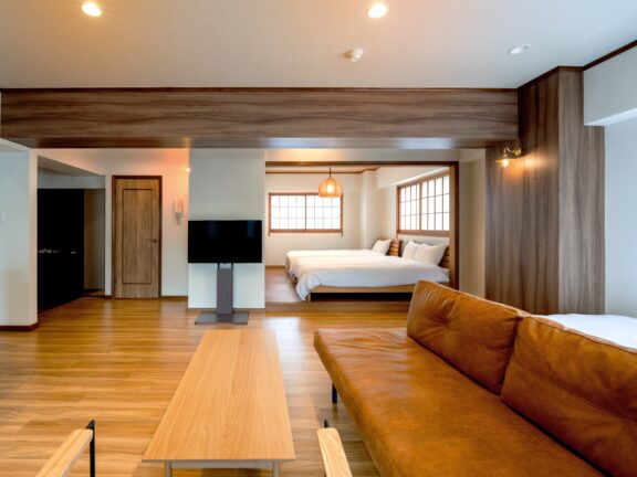 落ち着きある和モダンの空間と、広々としたリビング・寝室が特徴で、家族旅行やグループ利用にも最適。観光にもビジネスにもアクセスしやすい立地です。
